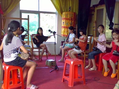 后排左數第四是莎莎 受訪者供圖 莎莎名叫李莎莎,是土生土長的泉州晉江人,90后的她,學唱南音已經有20個年頭。她還記得,最初學南音那年,她剛9歲。 “我奶奶喜歡看戲,我小時候經常跟奶奶去我們當地的南音社去看戲,開始我就是跟著去玩的?!鄙f,起初,她只是覺得南音社里一群人聚在那里很熱鬧,而且每次去都有糖果吃。 但時間久了,耳濡目染之下,幼小的莎莎就成了南音社的一名小學員?!懊刻煜挛绶艑W后和周末,都要去社團學習?!备鷮W習其他戲曲一樣,學唱南音也要經歷一段艱難的蛻變過程,這個過程漫長而又痛苦。 “南音的曲子最短的也有四五分鐘,長的有半個小時以上,所有的唱詞都要背下來。還要學習琵琶、二弦、三弦等樂器?!鄙貞浾f,當時,自己每次都提前一個多小時到課堂,“一個人練譜子、背唱詞,就是想比別人記得快一點”。 但慢慢地 ,和莎莎一起學南音的小姐妹陸續離開了南音社?!白疃嗟臅r候二三十個人,學到最后,只剩我們8個?!鄙f,堅持學下來的人少,除了學習難度大、需要背的東西多外,還有一個重要的原因,就是南音實在太古老了。 “這種傳統的劇種很多人聽不來,不喜歡這種咿咿呀呀的唱腔,小時候就經常被人家取笑?!鄙€記得。不僅如此,在泉州當地,有在葬禮上請南音社團演唱的習俗。因此,一度南音被一些人認為是不入流的,而對于演唱南音的人,也難免會帶有偏見。 盡管如此,莎莎還是堅持了下來,她花了七八年的時間,學會了南音的6種唱法和5種主要樂器。到現在,她能熟練演唱近80支南音曲目。 一度放棄南音 卻在新媒體上打開新大門