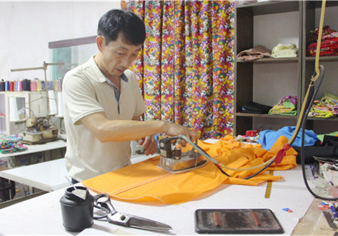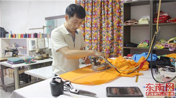 蟳埔女服飾寬松美觀、方便勞作,也成為當地一大文化特色。 東南網記者 林婕 攝 “蟳埔女的服飾,其實從一開始就是為了方便勞動而設計的?!秉S晨告訴記者,蟳埔女所著衣服多由棉麻粗布制成,寬松舒適,上衣為斜襟、七分寬袖、右衽,俗稱大裾衫,褲子為七分闊腿褲,這樣的設計便于在海灘上勞作,挑擔行走又輕松自如,“以往的衣服以藍色、灰色、黑色為主,樸素又耐臟,而頭發也是刻意盤成一圈,再穿一根骨簪固定,防止低頭時長發垂下影響勞作?!?/p> 黃晨表示,蟳埔女服飾已有數百年歷史,以往均為手工制作,工序精致。1973年,11歲的黃晨師從自己的舅公,開始學習蟳埔女服飾制作,“一開始也是想著學一樣手藝,學著學著就越來越感興趣,三年多后,我就開始獨立進行制作了?!币酝y埔女服飾為純手工制作,廣到畫線剪裁、細到每處針線縫合都需要依靠雙手完成,這一過程需要花費較長時間,對制作者的細心與耐性都是一份考驗,“有時一站就是幾小時,尺寸也不容有一絲差錯?!钡?978年后,同期學習這項技藝的20多人陸陸續續轉向了其他行業,只有黃晨選擇了堅守,“這種傳統的技藝經過很長一段時間流傳下來,現存的就是精華,需要有人守護?!?/p> 幾盞茶后,黃晨來到制衣間制作一件衣服。蟳埔女服飾的制作對布料有一定要求,“一般使用棉布或者麻布制作,經薯榔汁等染成深色,以防在勞作過程中被海水侵蝕或被陽光暴曬褪色,后來生活方式變得多樣了,布料顏色也豐富了?!背赛S色的棉布根據顧客自身的尺寸畫好線后裁剪,布料裁剪尺寸一般不能太長太寬,以防海邊勞作時被漁網纏住,但又要設計得寬松,方便彎腰伸手等,這就要求制衣者具有豐富的經驗。裁剪后的布料邊角用漿糊粘合固定后進行熨燙,如此反復多次,再使用縫紉機縫制。一個多小時間,黃晨在熨衣的桌板與縫紉機前來回走動,一件上衣才初見雛形?!斑@還不是最費時間的,縫合衣服上的盤扣還需要兩三個小時?!秉S晨介紹道,如今制作一件衣服需要花費5個小時左右,包含畫線、裁剪、粘合、熨燙、縫合等步驟,有時一天只能做上一套蟳埔女服飾。精細繁雜的工序耗費時間長,但成品頗受顧客喜愛,“手工的衣服布料穿起來都比較舒適,其次用雙手做出來的東西,不大容易壞,跟機器做出來的也還是不一樣的?!?/p> 懷揣初心 數十年堅守期盼后繼有人 一套傳統服飾,既體現了蟳埔當地的風土人情,也成為代代蟳埔女性勤勞奮斗的縮影。2007年,黃晨在豐澤文體部門的支持下對蟳埔女服飾制作中心進行改造,成立了蟳埔女傳統服飾傳習所,希望能將此作為展示和交流蟳埔女習俗的重要窗口。 不同材質的布料,制作精致的成衣,色彩豐富的簪花圍頭飾,防水輕便的腰包,乃至形象逼真的蟳埔女人偶……在蟳埔女傳統服飾傳習所,記者見到了各式各樣的蟳埔女服飾,所有的服裝成品均為黃晨親手制作?!坝行┮路衅鋵嵍疾刂适??!秉S晨指著一件由兩種花色拼接而成的衣服介紹道,“以往人們衣服都是一種顏色,會出現這種拼接的衣服,主要是因為很多蟳埔女在挑擔做事時肩頭部分容易磨破,但又舍不得其他地方完好的布料,就干脆拿另一塊布料拼接在一起?!绷攘葞拙?,便將蟳埔女辛勤樸素的形象勾勒而出。