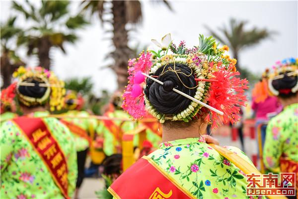 蟳埔女頭飾 東南網記者 林婕攝 今年4月,黎明職業大學將校內多個大師工作室聚集起來,打造成海絲文化集鎮,并設立了海絲文化展廳,黃晨的蟳埔女服飾大師工作室就在其中,他也將部分蟳埔女服裝與頭飾作品置于展廳,供學生參觀交流?!斑@種走進學校的模式,確實取得了很好的效果?!秉S晨表示,自蟳埔女服飾制作文化設置到學校當中后,不少學生表示出了強烈的興趣,“有很多學生會特地跑到我的服飾傳習所,跟我學做簪花圍等,有部分人也逐漸產生學習蟳埔女服飾制作的意愿?!?/p> 技藝喚醒傳承希望,黃晨依舊不敢懈怠,“學習蟳埔女服飾制作并非一朝一夕可做到,這項技藝的傳承發揚也需要付出很多心力,未來的路還很長?!闭劶拔磥?,他表示在延續與學校間交流合作的同時,還將致力于爭取更多面向社會的平臺,將蟳埔女習俗中的精髓魅力傳播出去。(東南網記者 傅心玫 陳培源)