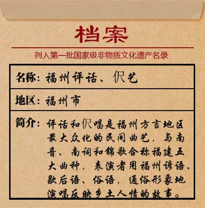 《秦樓月.春回坊巷》被文化部邀請參加全國優秀曲藝節目展演并獲得展演獎 福州評話和伬唱是福州方言地區最大眾化的民間曲藝,它們與南音、南詞和錦歌合稱福建五大曲種。福州評話是以福州方言講述,演員多為一人,僅用銅鈸、醒木、紙扇、手帕,搭一座高臺,擺一張桌子就可演出;福州伬藝又名伬唱,用福州方言說唱,表演形式一樹多枝,通常為一至二人自操二胡或三弦說唱表演,以唱為主,間有說表,琵琶、三弦、月琴、低胡、笛、笙、簫等都是它的伴奏樂器,還有十番伬、老虎伬、蓮花哨等十余種表演形式。它們是2006年進入第一批國家級非物質文化遺產名錄的福州曲種。 十幾年前,隨著文化多元化,文化消費有了更多選擇,舊城改造,觀眾群體被分流,評話伬藝“場”消失,人才青黃不接,福州曲藝和傳統藝術一樣遭遇了前所未有的危機。已經處于瀕危階段的福州評話和伬藝,是如何走到了一個新的高度呢?本期專欄帶您探尋福建、福州曲藝帶頭人,福州伬藝省級非遺代表性傳承人陳曉嵐的傳承故事。 傳承保護福州曲藝
