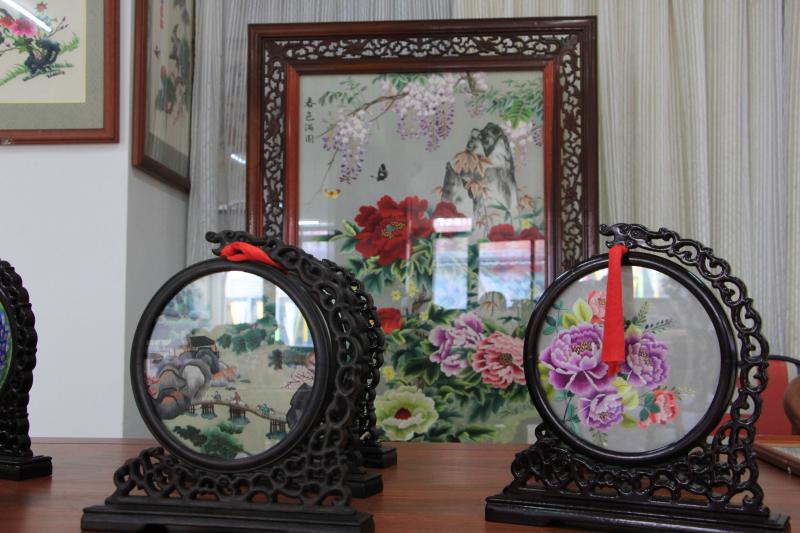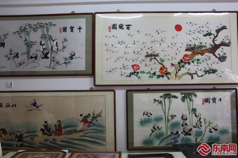 裝框的漳繡作品。東南網記者 林永清 攝 1979年,陳鐘輝在廈門中山路的一家工藝品賣漳繡,當時到廈門的臺胞對漳繡十分喜歡,他們回臺灣總要帶上幾件。精美的做工,讓漳繡生意日漸紅火起來,通過海上航運,漳繡遠銷東南亞。 可隨著時代的變遷,漳繡市場也逐步萎縮,“知道漳繡的人越來越少,能夠欣賞漳繡的就更少了!”由于銷路狹窄,手工漳繡難以通過批量生產降低成本,而單一定制的漳繡又需要不菲的人工成本,這讓傳統的漳繡陷入了困境。為了讓漳繡廠堅持下去,作為一名跨界企業家的陳鐘輝,經常用經營其他企業的收入投入到漳繡中,他甚至利用刺繡廠現有條件招攬一些生意。 “不能讓悲劇重演了!”如今,漳州“四漳”只剩下漳繡這門工藝,陳鐘輝多次呼吁政府加大對漳繡進行保護和傳承,自己也一直在用實際行動堅守著漳繡。上世紀90年代,他跟漳州多家職校合作開辦了漳繡專業班,同時也在各個縣區開過漳繡培訓班;另外,他還招收了幾批學徒,這些學徒學成后可以到漳繡廠上班,但后來因各種原因,能最終堅守下來的也沒幾個了。 為了適應市場變化,陳鐘輝對漳繡作品進行了改進,他嘗試用人造絲取代真絲來制作漳繡,在最大程度保持漳繡質量的同時又降低成本,這有利于漳繡進入普通百姓家庭;他還迎合時代主題對題材進行創新,“如之前創造的《生態九龍江》,就是體現漳州現在的生態主題?!?/p> 而陳明、陳鵬兄弟兩人也不斷把新材料、新題材、新思維加入到傳統技藝里面,使漳繡作品更具有時代感。陳鵬首次提出實施“手、機”結合的生產理念,將漳繡作品在傳統基礎上的創作與機器運作相結合,逐步實現生產規?;?,既保持漳繡傳統作品的韻味,又提升生產效率,降低成本;他們還在原有針法的基礎上,研發出了金蔥繡,這種繡法多見于戲服,繡品富麗堂皇,似雕非雕,這也讓漳繡進一步走進了普通用品。 在傳播漳繡技藝上,陳鵬多次代表省政府赴香港參加文化交流活動,表演漳繡絕技;陳明也多次將漳繡帶出漳州,在展銷會上展示?!昂尾蛔屨睦C也上微博、微信?”陳明對漳繡傳播還有個大膽的想法,他想依靠網絡的力量,在網上“秀”一些漳繡的作品。 傳承漳繡,傳承中國文化