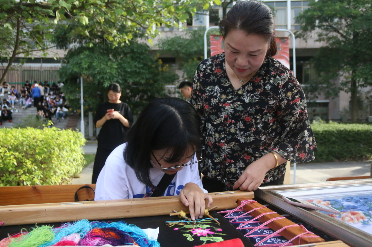 今天的漳繡,早已突破了傳統的相傳模式。通過不懈地堅持,陳鐘輝已經成功帶出了新的一批徒弟,每周他們都會積極參與非遺進校園活動,讓學生們近距離接觸漳繡,他的徒弟們也打破了傳統慣例,敞開大門廣招學徒,甚至到漳州市屬高校招收學生,傳授漳州刺繡技藝。