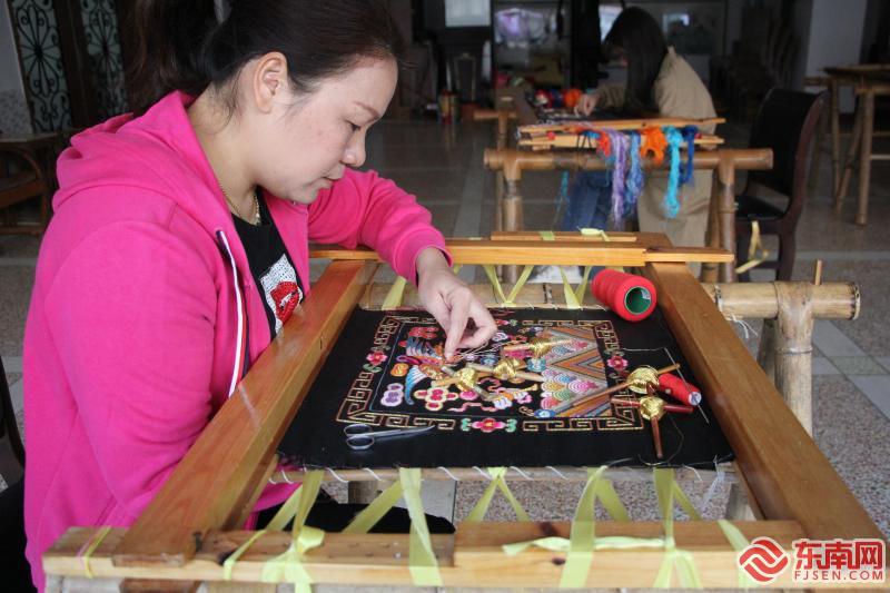 繡工們正專心致志地做著手里的作品。東南網記者 林永清 攝