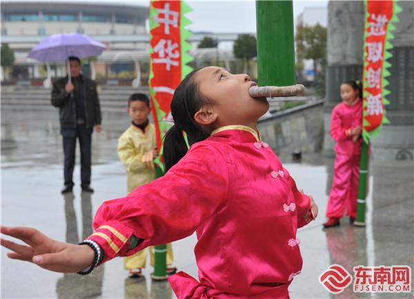 方振南在建甌芝山中心小學指導學生挑幡有十個年頭了。每天放學,芝山中心小學的孩子們都會跟著方振南練一個多小時再回家。經過多年的堅持和努力,學校的少兒挑幡隊員們多次應邀外出表演,成為該校辦學的一大特色項目。