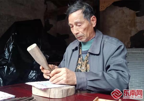 張延玉老人在制作刻紙龍燈 東南網記者 賴志昌 攝 “噔噔噔…”端坐在長椅,將刻紙墊在圓木上,張延玉聚精會神地拿出小木棒有力地敲擊鋼鑿,一張普通A4大小的紙張,經他妙手輕敲細鑿,一點一點地成型變成了精美絕倫的藝術品。 慢工出細活。制作龍燈頗費精力與時間,一個24孔八面的燈籠,平均需耗時一天時間?!爸谱骺碳堼垷魶]啥訣竅,心要靜、慢慢鑿,得一步一步來!”張延玉深得這項技藝的要領。 歲月漸遠,年味漸淡。如今對于張延玉等老藝人來說,刻紙龍燈是滿滿的鄉愁與回憶?!耙郧凹壹覒魬舳甲鰺?,現在做的人少了,參與這項活動的年輕人也越來越少?!睆堁佑裾f,鼎盛時期村里做刻紙龍燈的有四百多戶人參加,龍燈總長達千米,而今只有七十余戶人參與,長度不超過二百米。 2011年,刻紙龍燈被列入省級非物質文化遺產名錄,聲名遠播。然而,與名氣形成鮮明對比的則是,刻紙龍燈的傳承卻面臨后續乏人的局面。如何讓這門古老的民間技藝薪火相傳?這成了當下張延玉等老藝人憂心的事。