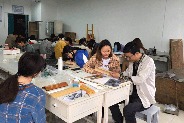 劉志高開展竹刻教學。受訪者供圖 隨著市場經濟的發展,不少竹刻人改行或打工、經商,加上竹刻對傳承人素養要求高,劉氏留青竹刻面臨傳人缺乏、從業人員少的窘況。 劉志高認為,非遺傳承不是靠人為制造存在的,而需要學術成果落地?!白尫沁z融入高校,是解決傳承與創新的一個有效途徑?!比ツ?,應莆田學院工藝美術學院林院長的邀請,劉志高將竹刻融入工藝美術學科教學課程。 關于竹刻藝術的傳承與發展命題,劉志高認為,要先做好學術研究,分解糟粕與精華,融入美育教育、兼融其他優秀文化,深化工美院校合作,創造良好的傳承環境,讓“老藝術”在高校的“新土壤”中“落地開花”。