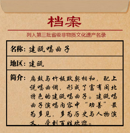 “唱曲子是祖宗傳下來的東西,有重要的歷史和語言價值。我不僅要學會,還要盡我所能,把建甌的曲藝項目傳承下去!” ——鄒超燕