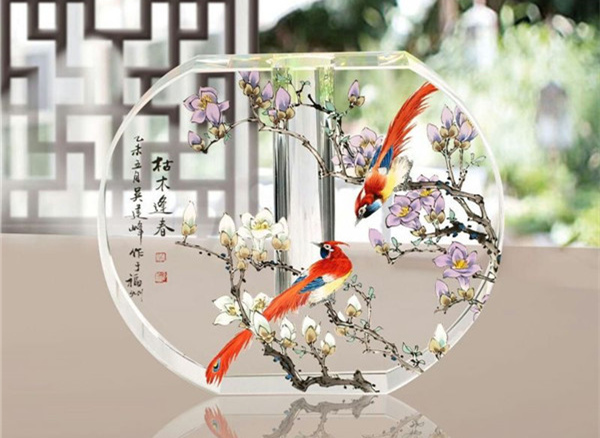 在南京南站,趙獻團隊設計的彩繪玻璃墻。受訪者供圖 據介紹,這些年來,趙獻及團隊與國家博物館、首都博物館、恭王府博物館、臺北故宮博物院等十幾家博物館合作,將當地特色文化融入彩繪玻璃,打造具有地域文化代表性的獨特產品。 趙獻說道,彩繪玻璃雖是舶來品,但是它在福州有著百年的歷史,經過這些年的傳承和發展,被越來越多的人認識。目前公司出品的彩繪玻璃,無論是它的規模還是產量在國內都是排前列的。這幾年,隨著和各省、市博物館雙方合作越來越廣泛,很多彩繪玻璃作品作為國禮,送給外賓,并得到外賓的認可,這些具有濃濃中國風的彩繪玻璃產品受到許多商家和民眾的喜愛。 “彩色玻璃從國外來,經過國人改良,將中國的傳統元素融入其中,再贈送給外賓,這本身就可以體現它的海納百川?!?/p> 據介紹,目前趙獻的彩繪玻璃工藝還在福州多座古厝展現:南后街的福建省非遺博覽苑有他們制作的彩繪水晶農民漆畫;泛船浦天主教堂上千片的彩玻工程由他們完成....... 玻璃也能講好閩都故事 在過去的十年中,趙獻及團隊嘗試創新發展彩繪玻璃工藝:開發臺灣幾米漫畫系列彩繪玻璃文創精品;與迪士尼合作開發迪士尼卡通人物系列的彩繪玻璃飾品;與日本動漫大師宮崎駿團隊簽約,為其漫畫制作彩玻禮品......