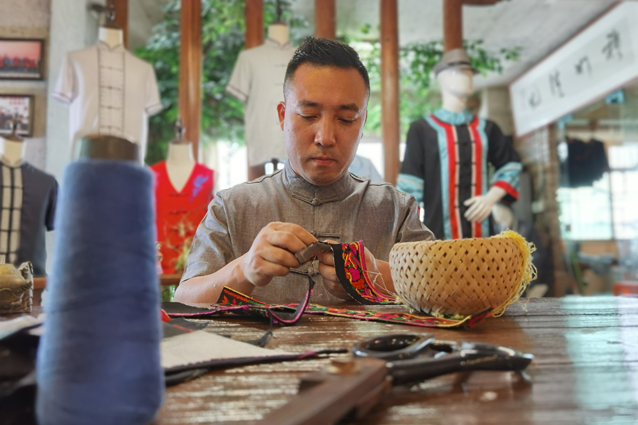 如今,為迎合時代發展,傳承人林章明另辟蹊徑,在保留原汁原味技藝的基礎上在畬族傳統服飾文化中加入時尚元素,把畬衣逐漸推向市場。他應用當代設計的理念,“跨界”開發非遺衍生品,讓非遺活起來、走出去,受到了更多年輕人的喜歡。