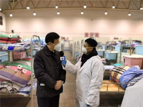 新華社國內部副主任張旭東(右)采訪中國工程院副院長、中國醫學科學院院長王辰院士。 針對海外關切,加強對外報道。對外稿件被美聯社、路透社、法新社、英國每日郵報等境外媒體廣泛采用,數十條英文稿被境外媒體采用過百家。在世衛組織發布此次疫情構成“國際關注的突發公共衛生事件”后,第一時間播發權威部門表態;針對有外媒曲解世衛組織聲明,及時公布世衛組織官網聲明全文和視頻。堅持每天推出英文評論,駁斥美西方抹黑污蔑,如針對美國官員“中國發生疫情有助于加速制造業回流美國”等言論,采寫《乘人之危不會讓美國偉大》等英文評論,得到海外網友積極響應。新華社海外社交媒體賬號集群新冠肺炎報道總瀏覽量突破4億次、互動量超過2500萬次。推出“社交媒體輿情觀察”專題,多方集納海外網友留言,播發《中國人的堅強樂觀溫暖了世界》《謠言粉碎機》等稿件,取得良好對外傳播效果。 發揮全媒優勢,創新話語表達。把融合發展成果充分運用于此次抗疫防疫報道。開設“我們在武漢”“隔離區直擊”“民生直通車 同心戰‘疫’”“新華社記者武漢Vlog日記”等全媒體報道欄目,組織新型冠狀病毒核酸檢測、方艙醫院搶建收治等直播報道,帶領受眾身臨其境走進抗擊疫情現場,平均點擊量千萬次。圍繞火神山、雷神山醫院建成交付使用,綜合運用無人機航拍、衛星數據等多種報道手段,推出《衛星高空“監工”,看雷火雙神山如何迅疾如雷》《火神山醫院是如何煉成的?》等系列新媒體報道,動態展示醫院建設從無到有全過程,畫面震撼、說服力強。制作推出原創MV《挺住,武漢》《我在你身邊》、音樂紀錄片《堅定希望》以及線上公益音樂會《堅定希望 中國加油》等,取得刷屏之效。