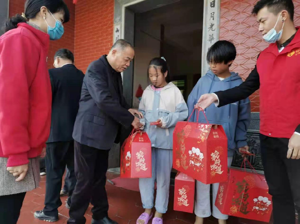 福建社會組織、愛心企業積極為父母就地過年的農村留守兒童捐贈過年物資。圖片來源:福建省民政廳