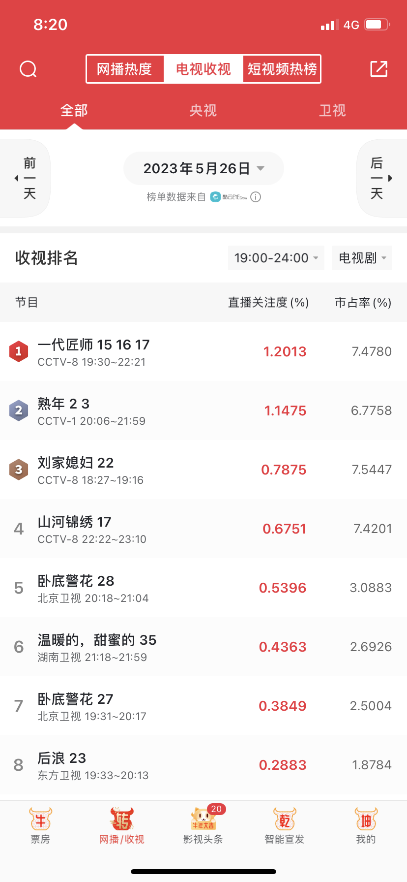 《一代匠師》從5月21日開播以來,貓眼收視排名幾乎都處在榜首,關注度不斷攀升?!兑淮硯煛犯呤找暵室惨鸨姸鄼嗤襟w進行報道,新華網稱該劇彰顯了“以道存技、以仁興業、以直處世”的中國工匠情懷。人民日報旗下專業影視微博號報道:年代傳奇劇《一代匠師》引發收視熱潮,該劇多日登頂人民收視榜收視榜首、人民熱度榜劇集榜首。一直以來,影視市場年代傳奇作品不斷涌現,其中也有許多電視劇、電影受到了觀眾的廣泛好評,成為屏幕經典。年代傳奇為何經久不衰?或許你能從《一代匠師》的熱播中找到答案。