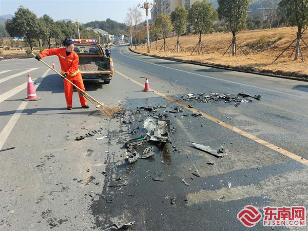 東南網1月24日訊(通訊員 黃千貴)“G534線清流縣龍津鎮山城山莊路段發生一起交通事故,事故造成機油灑漏至路面,麻煩前去處置一下?!?月23日上午11:00,清流公路分中心城關公路站站長江強收到消息后,立即組織附近的養護作業人員前往處置。