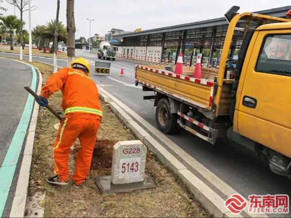 廈門國道228線公里牌、百米樁煥新升級 提升道路通行環境