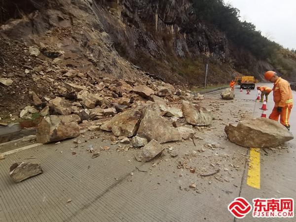 桂口公路站職工正在黃溪坑村路段清移落石。 東南網3月17日訊(通訊員 徐紫瑩 鄧林寧 張云璐)3月15日凌晨1時許,沙縣桂口公路站站長黃水南接到險情消息:省道308線沙縣區黃溪坑村路段有落石占據路面,影響通行安全。黃水南迅速組織值班人員到達現場查看,只見路面上散落大大小小的石塊約75方,其中,較大塊的落石無法依靠人力實現快速清除,需要機械配合清運。 考慮現場情況后,黃水南當即組織人員對現場進行安全布控,將小塊落石清掃干凈、大塊落石移動到同一邊,確保有半幅路面可安全通行。同時,在該路段前后都設置了標志標牌,提醒過往司乘人員注意。為進一步確保通行安全,黃水南和值班人員留在附近安全區域進行現場值守,天一亮,他們便拿著鐵鍬、鐵錘、掃帚等工具,將落石清移到路肩,等待機械支援。截至目前,三明市公路事業發展中心沙縣分中心管養路段共發生樹木倒伏5處,溜方落石4處,投入搶險人員26人次。