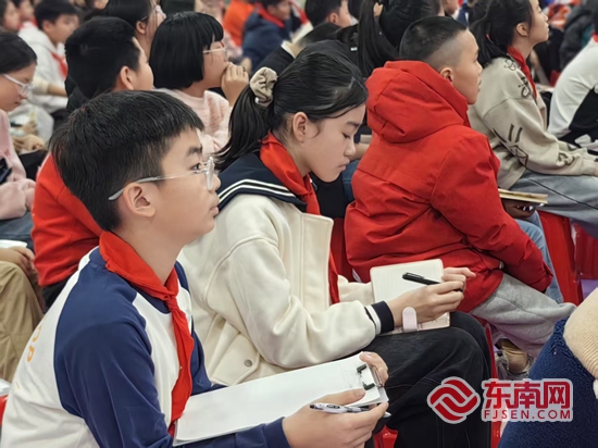 宣講現場,學生們認真聆聽紅色故事,并時刻做筆記。謝吉柳 供圖 宣講結束后,主辦方一行參觀了晉江市第二實驗小學史志驛站和青新書院史志驛站。站內豐富的史志書籍,為學生和社區居民讀史用志搭建了新平臺,讓史志文化“走出去”“用起來”。 “通過這次活動,我深刻認識到紅色精神的偉大力量,它是無數先輩用熱血和生命鑄就的寶貴財富。作為新時代的少年,我們要將紅色精神傳承下去,讓它在新時代綻放出更加耀眼的光芒?!眮碜詴x江市第二實驗小學的陳思妤同學說道。 此次“講好紅色故事 傳承紅色薪火”紅色故事宣講進校園活動,讓師生們在紅色故事中感悟革命精神,汲取奮進力量。主辦方希望,未來有更多青少年能夠在紅色精神的激勵下,努力學習,為實現中華民族偉大復興的中國夢貢獻自己的力量。 泉州紅色故事“七進”基層巡回宣講進校園活動旨在深入貫徹落實習近平總書記在福建考察時的重要講話精神,扎實推進黨史學習教育,強化青少年思想政治引領,教育引導少年兒童傳承紅色基因,賡續紅色血脈。本次活動由泉州市委黨史方志室、泉州市委文明辦、泉州市關工委、晉江市委黨史方志室主辦,晉江市關工委、晉江市老促會、晉江市第二實驗小學、晉江市青陽街道青新社區承辦。 |