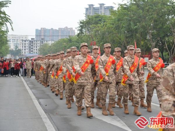 巡游現場 東南網3月17日訊(通訊員 陳君妍 黃惠云 文/圖)3月14日,莆田市仙游縣舉行2025年上半年“熱血青春 逐夢軍營”主題系列歡送新兵活動,173名熱血青年身披戎裝、懷揣赤誠,即將開啟保家衛國的軍旅生活。值得一提的是,此次活動別出心裁,在以往送喜報方式的基礎上進行創新,將新兵與立功喜報一同送達,讓新兵在踏上征程之際,感受榜樣力量,汲取奮進動力,共筑熱血報國夢。 當天下午3時許,新兵及其家屬、立功受獎軍屬在縣人民武裝部營區集結。激昂的鑼鼓聲瞬間點燃了現場氣氛,2025年上半年仙游新兵出征巡游儀式正式啟幕。巡游隊伍從縣人民武裝部營區出發,沿著八二五北街、清源東路、二環路紅綠燈行進,最終抵達仙游縣六館廣場。 一路上,交警全程護航,場面聲勢浩大。道路兩旁,學生們列隊歡送,群眾自發沿路相送,大家揮舞著紅旗,用最真摯的祝福為即將奔赴軍營的青年們壯行。173名新兵身著嶄新軍裝、胸戴紅花、身披綬帶,邁著整齊的步伐,齊聲高唱《團結就是力量》,展現出新時代仙游好兒郎的良好風貌和高昂士氣,“當兵光榮”的氛圍彌漫在整個城區。