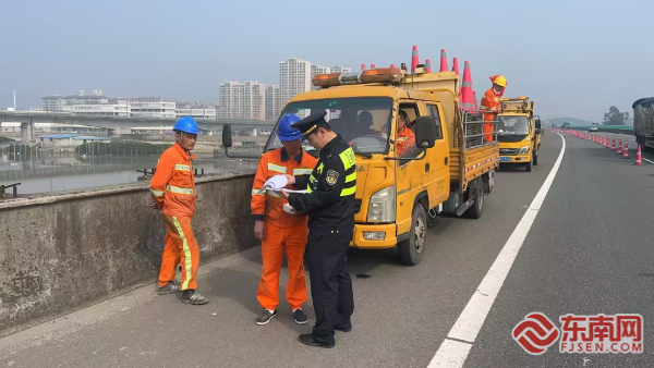 執法員現場查驗施工記錄。寧德高速執法支隊供圖 精細管理,閉環整改。強化施工全鏈條監管,嚴格檢查施工區域警示標志設置、安全員配備及應急預案制定情況,確保風險可控。督促施工單位落實崗前安全培訓、設備日檢等制度,建立隱患整改臺賬,做到“即查即改、動態清零”。聯合開展應急演練,模擬突發場景提升處置能力,確保關鍵環節萬無一失。