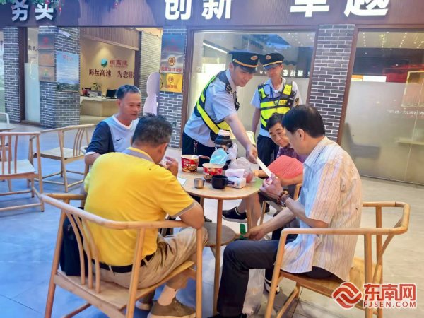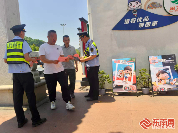 依托收費站開展“安全隨行”流動宣傳。寧德高速執法支隊供圖 站點倡導,共守文明。依托收費站開展“安全隨行”流動宣傳,執法人員結合夏季行車特點,向駕駛員講解違法停車、拋灑滴漏、疲勞駕駛等行為的危害,發放印有愛路護路標語的車載應急包、挪車電話牌等實用物品。針對沿線村民,主動走訪講解“隔離柵內放牧”、“橋下堆積雜物”等行為的法律后果,并聯合村委設立“護路安全監督員”,構建群防群治網絡。