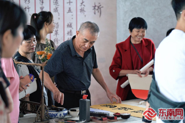 活動現場 東南網5月29日訊(通訊員 鄭國 黃惠云 文/圖)為弘揚傳統文化,加強對軍人家屬的關心關愛,近日,莆田市仙游縣退役軍人事務局聯合縣人武部、縣婦聯、縣擁軍優屬協會、中國郵儲銀行仙游分行,在鯉城街道南橋社區開展“情系雙擁·愛滿端陽”迎端午主題活動,百余名兵媽媽、軍嫂、軍娃等齊聚木蘭溪畔,共敘軍民魚水情,同慶傳統佳節。 活動在《九歌》韻律中拉開序幕。蔡襄書畫院的書法家揮毫潑墨,以筆墨為載體,抒發對中國軍人的崇高敬意,每一幅作品都飽含著對軍人的深深敬仰。與此同時,中國郵政儲蓄銀行仙游縣分行現場介紹針對軍嫂的專屬優惠政策,以金融助力彰顯社會關懷。