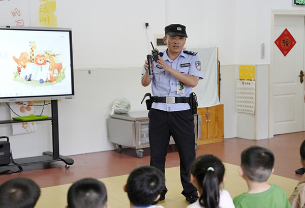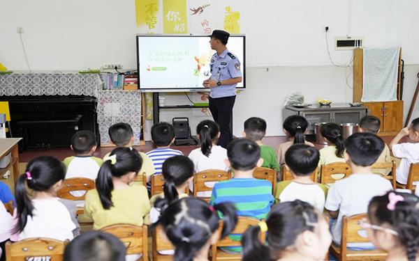 活動中,民警化身為親切的“法治老師”。他們通過講述真實發生的案例,為孩子們普及學前教育法。同時詳細介紹騙子的常用拐騙手段,并傳授使用防拐騙方法,還普及了交通安全知識。民警借助生動的動畫短片和趣味問答引導幼兒理解“遵守規則”“保護自己”的重要性。在防拐演練環節,民警播放動畫片《不跟陌生人走》,并教孩子們傳唱朗朗上口的防拐兒歌,幫助孩子們識別騙術,牢記求助方法。