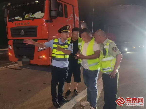 大件運輸車輛匝道受困 寧德高速執法深夜疏堵保暢通