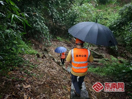 圖為安溪分中心工作人員在易溜方路段巡查。泉州市公路中心 供圖