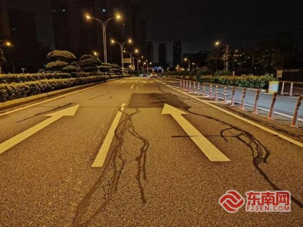 裂縫病害(廈門公路中心供圖) 東南網7月31日訊(本網記者 劉瑋 通訊員 盧奕鈞)國道228線杏錦路段連接杏林大橋,是進出島的快速通道,沿線居民小區密集,車流晝夜不息。長期荷載與風雨侵蝕讓路面出現縱向裂縫、橫向裂縫和局部下沉,行車顛簸、胎噪明顯。近日,廈門集美公路部門采用高性能瀝青混合料超薄罩面技術,把厚度壓縮到1.5至2厘米,短短數日便讓道路重新變得平整、安靜。 集美公路部門相關負責人表示,這次使用的罩面材料由超強改性瀝青與耐磨輝綠巖或玄武巖石料組成,既薄且韌,抗滑、防水、粘結性能均優于傳統4到5厘米的加鋪層,“就像給路面做一次微創修復,省料、省時,對交通干擾也小”。施工時,先用雷達和人工聯合“體檢”,對病害位置精準開方,銑刨、填補、灌縫一步不落;隨后精銑刨0.5至1厘米,既去車轍又增加新舊瀝青的咬合力;高壓水槍與吸塵設備接力,把粉塵碎屑一掃而空;智能噴灑的不粘輪高粘改性乳化瀝青迅速形成隱形防水膜;普通攤鋪機在高粘瀝青的流動助力下完成薄層攤鋪,厚度誤差控制在兩毫米以內,平整度達到高速公路標準;雙鋼輪與膠輪壓路機輪番上陣,把密實度壓到98%以上;最后,高反光標線重新亮相,夜間行車更安全。