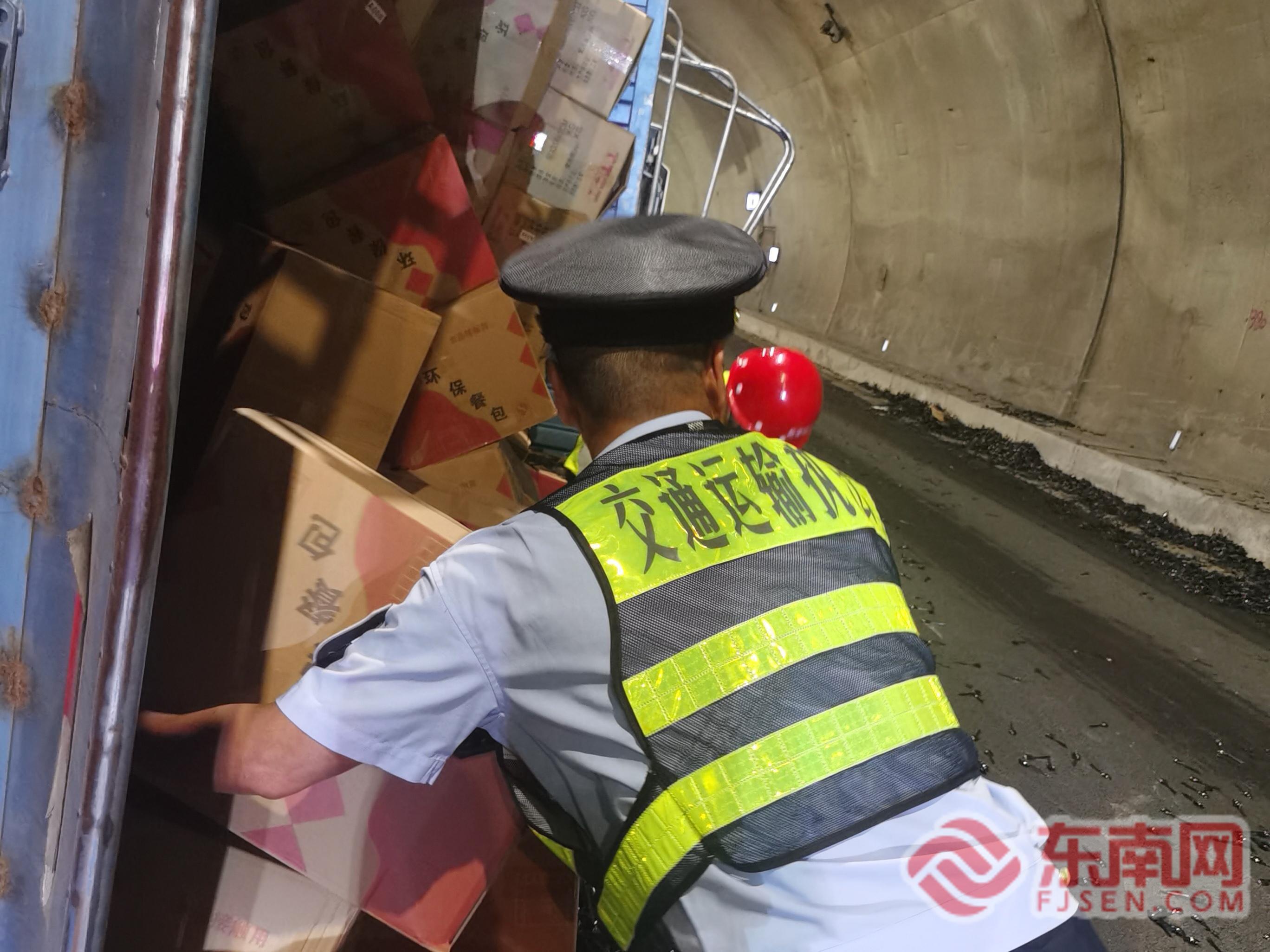 東南網8月1日訊(通訊員 李思澄 王禮木)7月30日22時07分,寧德高速執法支隊柘榮中隊接路網中心緊急通報:甬莞高速B道430K+0M處隧道內,一輛運輸餐飲勺子的貨車發生側翻,大量貨物散落,嚴重阻塞隧道通行。