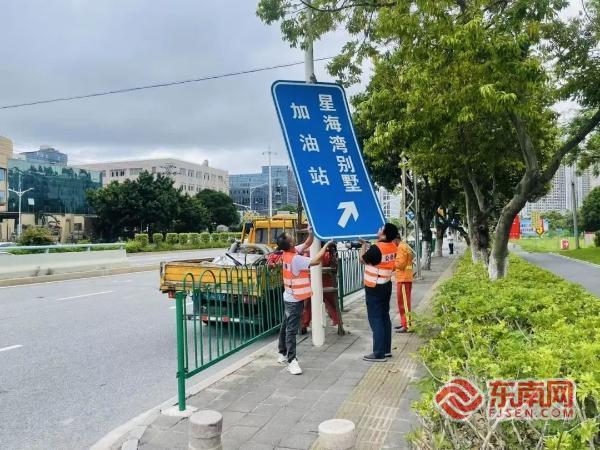 集美公路部門集中拆除違規廣告牌 為路域環境“減負”