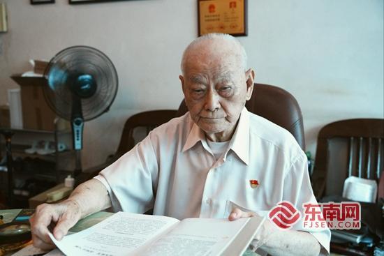 李祖景至今保留著閱讀的習慣。 東南網記者 杜志鑫 攝 從戰線到書業:以篤行續紅色初心 1945年8月15日,日本宣布無條件投降,抗日戰爭迎來正義勝利,但李祖景的步伐并沒有就此停下,他積極發展一批批革命群眾,投身泉州中心縣委開展的多項革命工作。李祖景既以交通員身份為潛伏戰友送情報、傳敵情,又隨部隊進軍解放官橋,并配合參與安海、水頭的解放戰爭。 1949年10月,晉江地委組織部將李祖景派去參與籌建泉州新華書店。彼時泉州剛解放,廣大群眾渴求了解革命思想,黨也亟需通過書刊傳播馬列主義、毛澤東思想與黨的方針政策。他與另外8名籌建人員晝夜不休,修繕布置書店門市部,并請回印刷技工和排版師傅,陸續發行了《共產黨宣言》《中國革命和中國共產黨》等革命圖書。這些書籍很快供不應求,大家受到新鮮深刻的革命教育。 “社會風氣煥然一新,日子慢慢變好,大家對生活也更有信心了,這就是書籍的力量?!被貞浧甬敃r的場景,李祖景仍難掩激動。1950年5月起,李祖景受命籌建石獅、安海、青陽新華書店,此后數十年,他將半生心血投入這一事業。熱愛讀書的他始終踐行“活到老、學到老”,家里床頭、書桌、櫥架等地常年放滿了書籍,即使到了96歲,他還保持著每日閱讀的習慣。李祖景好學不倦、嚴謹踏實的作風,也滋養了良好家風,在鄰里間傳為美談。 如今身處和平盛世,可戰火歲月的苦痛,李祖景始終沒忘,“日本人欺負我們中國,那個罪惡太大了,講也講不完……”談及日軍對百姓的殘暴傷害,他的聲音一度哽咽?!岸嗌偃藶榱丝箲饎倮餮獱奚?,為了解放事業奉獻青春,我們不能忘了他們?!苯甏蟛〕跤?,他便著手整理回憶錄,將一生征程及所作的雜文和詩聯整理起來,從文字撰寫到校對排版,他都一絲不茍,哪怕行動不便,也堅持逐字逐句核對,最終匯成《歲月痕文集》《辛怡齋詩聯稿續集》兩卷書稿出版,這些文字,為泉州抗戰史研究提供了珍貴的一手素材。 “大刀向日本鬼子頭上砍去,全國抗戰的日子來到了,前面勇敢義勇軍,后面有勇敢的老百姓……”采訪接近尾聲,李祖景再次唱起記憶中的抗戰歌曲。微風穿過窗臺,拂過書桌上的回憶錄,吹起一頁頁書卷,也將這名老同志的傳奇人生輕輕鋪展。 近日,泉州市領導看望慰問抗戰老戰士老同志代表,其中就有李祖景,當一行人為他頒發“中國人民抗日戰爭勝利80周年”紀念章,并向他表示敬意時,李祖景緩緩站起身,挺直脊背,立定身體,認真地敬了個禮。這個動作穿越八十余載時光,仿若是如今的他,向當年那個在街巷里念著童謠的少年,傳去了一份鄭重的回應。 |