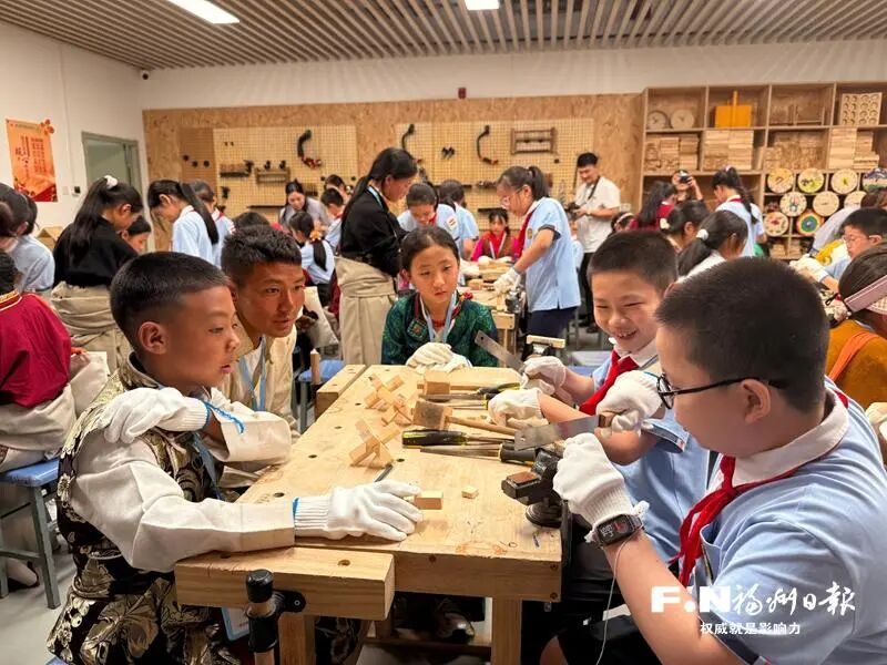 兩地青少年一同體驗木工技藝。記者 馮雪珠 攝 20日下午,在福州市援藏工作隊帶領下,西藏八宿縣師生一行37人走進福州教育學院附屬第一小學(以下簡稱“一附小”),參觀體驗此次來榕交流活動的第一所學校。 大巴還未停穩,來自八宿縣的學生就迫不及待地掀開車窗簾,露出好奇的眼睛。學校內,伴隨著《茉莉花》的歌聲,一附小師生鼓掌熱烈歡迎來自遠方的客人。 學習機器人編程,觀看無人機表演,體驗陶藝木藝……在一附小,來自八宿縣的中小學學生代表與一附小學生一道,在互動活動中感受學校的特色教育理念及教學模式,收獲滿滿。 “今天是來福州的第一天,這里濕潤的空氣和滿眼的翠綠,與家鄉的遼闊蒼茫是完全不一樣的景致?!眮碜园怂蘅h的中學生洛松貢布說,進入校園后,他們立刻被老師和同齡人熱情包圍著。 據悉,交流活動為期9天。接下來,八宿縣師生代表還將參觀體驗福州市英才學校、倉山小學、金山小學,深度體驗福州教育實踐,還將前往福州市圖書館、福州市科技館、中國船政文化博物館以及三坊七巷、上下杭等地,感受現代福州與閩都文化的魅力。(記者 馮雪珠) |