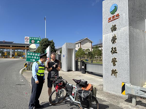 東南網10月27日訊(通訊員 鄭武 呂越)10月25日,寧德高速公路行政執法支隊柘榮中隊執法人員在柘榮收費站開展例行巡查時,發現一名外籍騎行游客在收費站入口處徘徊,神情焦慮。執法隊員立即上前,通過翻譯軟件耐心與其溝通,了解情況。