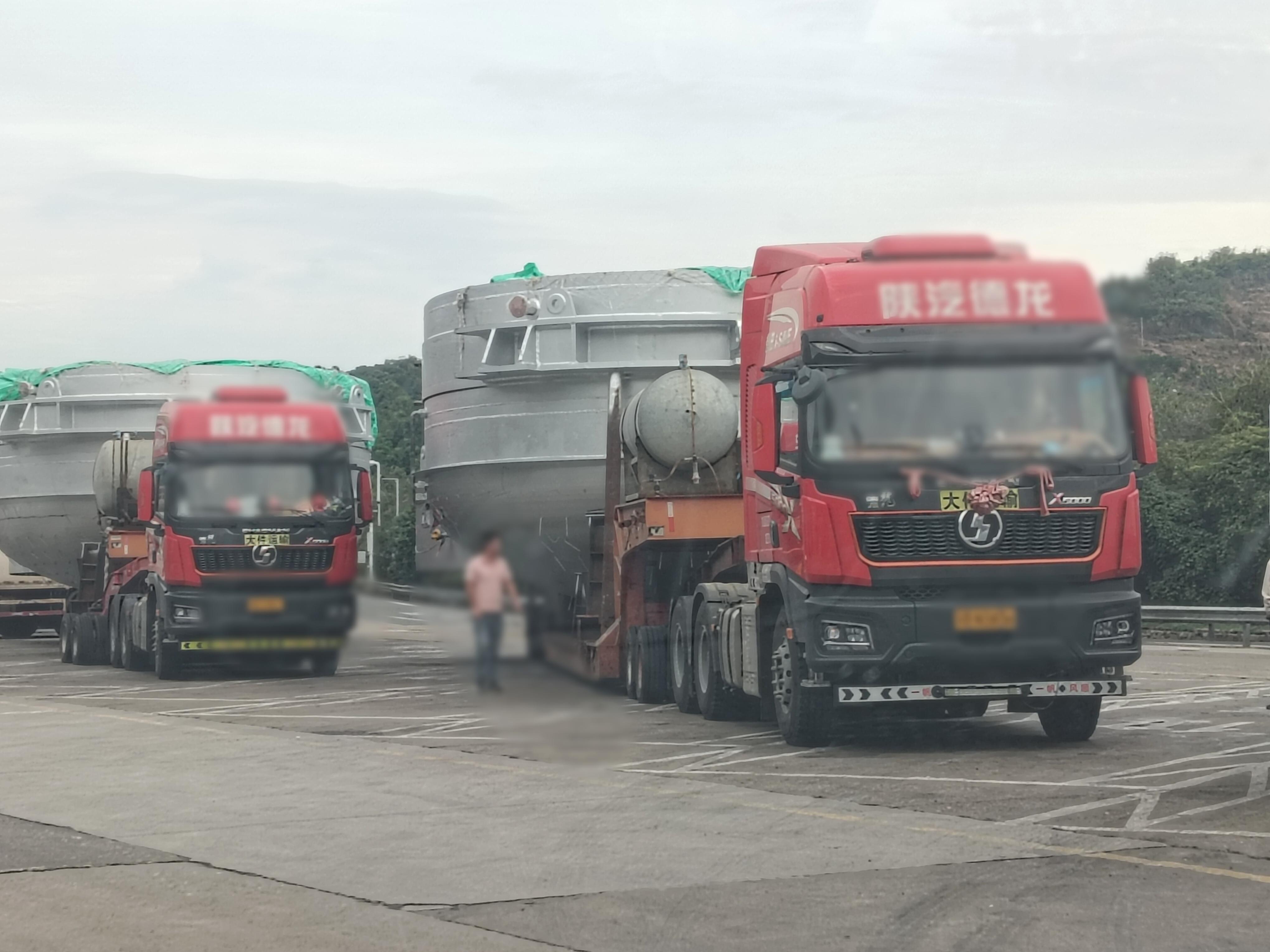 兩輛違規運輸大件車。寧德高速執法支隊供圖 當日10時37分,寧德高速執法支隊一大隊接到支隊指揮中心警情:沈海高速A道牙城路段有兩輛超寬大件運輸車向南行駛,導致后方車輛通行受阻。霞浦中隊執法人員立即前往現場,進行交通疏導與安全護送,引導車流有序通過。
