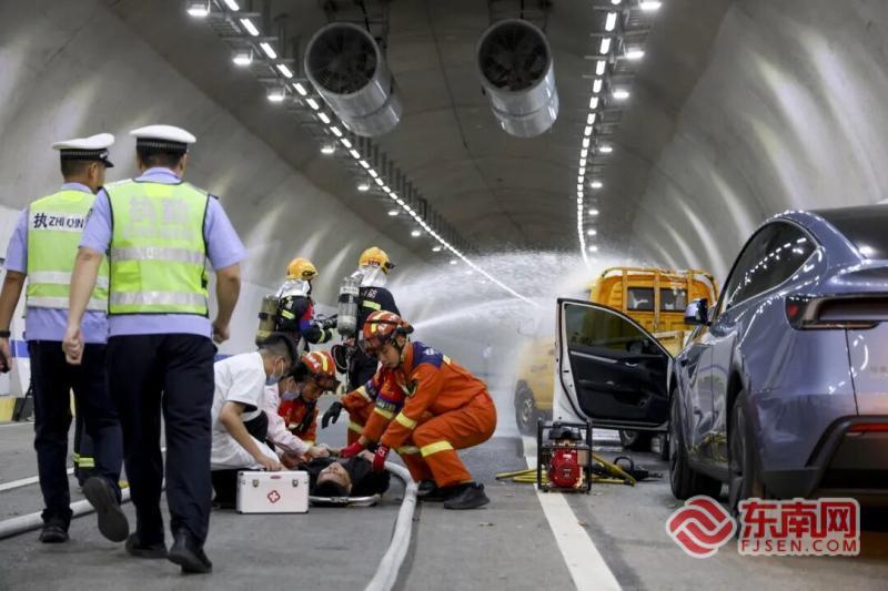演練模擬現場(廈門公路中心供圖) 東南網10月29日訊(本網記者 劉瑋 通訊員 林萍)10月28日,2025年廈門市交通公路綜合應急演練暨交通戰備演練在廈門北站連接線豪巖隧道同安端收官。本次演練由廈門市交通運輸局、同安區人民政府聯合主辦,廈門市公路事業發展中心、廈門市公路橋隧維護與應急中心承辦,同安區應急管理局、同安區衛生健康局、同安區消防救援大隊、交警等多家單位協同參演,通過多科目實戰檢驗,全面錘煉應急響應與協同作戰能力。 本次演練緊貼廈門實際風險特點,設置三大實戰化搶險科目,各環節環環相扣,場面緊張有序。 在“隧道事故應急搶險救援”科目中,模擬隧道內車輛事故引發險情。應急隊伍接到指令后迅速行動,高效完成人員疏散、火情控制、傷員救治等系列操作?;璋捣忾]的隧道環境下,救援人員配合默契、動作迅捷,展現出過硬的心理素質與專業救援技能。