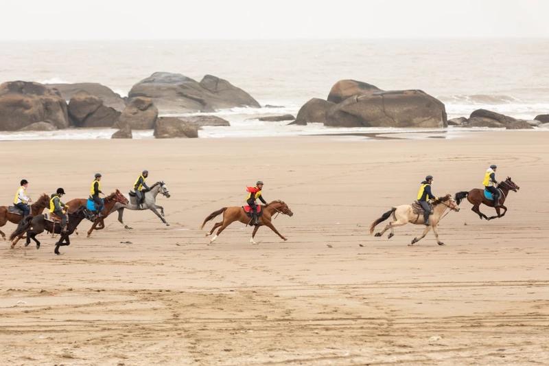 1號濱海風景道——福建·長樂“海騎英雄會”活動現場(主辦方供圖) 本次活動以海騎為主題,以海邊騎馬、騎游為重點內容,創造主客共享的旅居生活,以此打造“濱海網紅打卡地”和“爆款風景道”,通過創建1號濱海風景道“文化+體育+旅游”時尚新名片,助力推動福建濱海旅游高質量發展,提升和擴大“清新福建”“福文化”品牌魅力,激發福建旅游市場新活力。 福建省文化和旅游廳一級巡視員吳立官在致辭中說道,在過去幾年里,福建文化和旅游部門始終用堅定信念和意志,在疫情造成的不確定環境中,為廣大游客尋找、創造新的旅游方式。除了翻越雪山草原,在濱海騎馬更有一番風味。福建海岸線長3752公里,從北到南風景多樣,許多沙灘都是騎馬的好地方,也是投資海騎這個旅游新業態的上好選擇。 活動現場,騎師們策馬揚鞭、車隊馳騁海灘、帆船隊揚帆共同起航揭開活動序幕。海騎競速表演賽火熱上演,來自海騎、機車、馬術等俱樂部及戶外運動愛好者齊聚一堂,在賽馬競速賽、繞樁表演賽、趣味海騎競速賽中輪番較量,賽馬、機車、越野車并駕齊驅的精彩畫面,呈現了一幕幕速度與激情的瞬間。