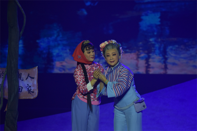 海峽題材作品《圍頭新娘》,以圍頭從“炮戰第一村”發展成“兩岸通婚第一村”為背景,描述了兩家三代人幾十年間的悲歡離合,串起一個兩岸人民“以通促融、以惠促融、以情促融”,攜手共建家園的“閩臺緣”傳奇故事。該劇先后入選國家藝術基金慶祝中國共產黨成立100周年大型舞臺劇和作品主題創作資助項目,獲第八屆福建藝術節暨第二十八屆戲劇會演優秀劇目獎。該劇主創團隊名家云集,國家一級編劇、導演、演員、音樂設計、舞美設計、燈光設計等共近10人。一級編劇陳欣欣剛剛榮獲第九屆中國戲劇獎·曹禺劇本獎,該獎項為全國性戲劇劇本創作最高專業獎項;一級演員、第29屆中國戲劇梅花獎得主陳娟娟在劇中飾演烏英一角。該劇具有濃郁的地域色彩,除了高甲戲特色唱腔和表演程式,又融入閩臺民間舞蹈,形成嶄新的審美意象,至今已演出70余場,深受專家和觀眾的喜愛。 會演期間,還組織專家學者、參演院團代表和觀眾,開展了觀摩、交流、研討等系列活動,《圍頭新娘》先后召開專場評議會和專家研討會,仲呈祥、董偉、季國平等全國知名專家對劇目當前呈現給予了充分肯定,并對下一步打磨提升提出寶貴意見。在組委會組織的專題研討會上,福建省梨園戲實驗劇團團長曾靜萍作為受邀專家代表,以《戲曲適應青年觀眾審美新變化的主動探索與經驗總結》為題作主旨發言,暢談所思所想,分享實踐心得和相關經驗。
