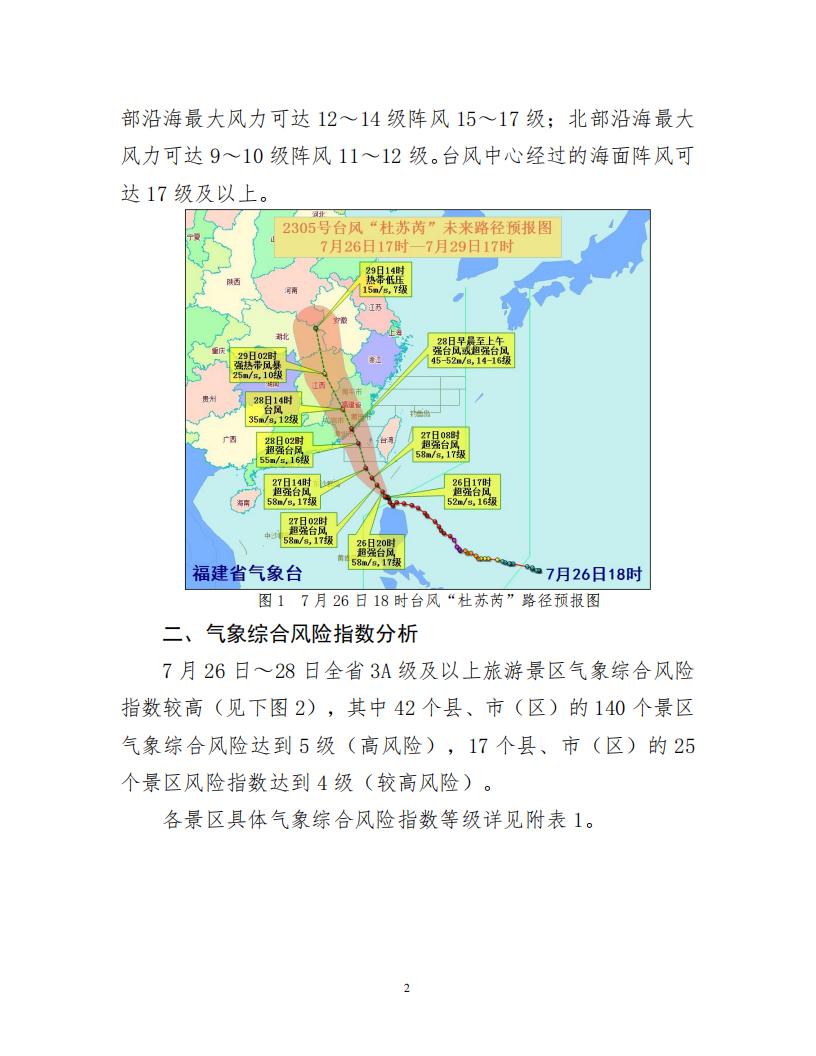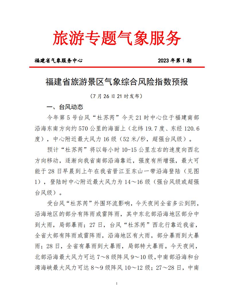 福建省旅游景區氣象綜合風險指數預報
