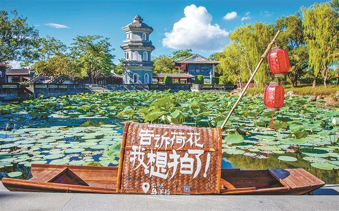 廈門園博苑,滿塘荷花與烏篷船“相遇”。