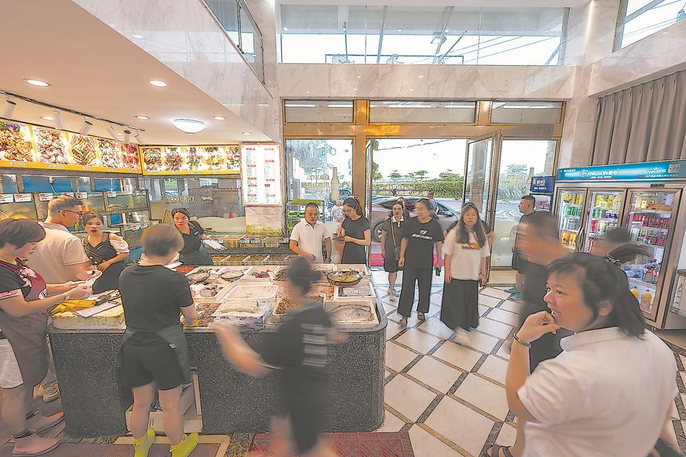 傍晚,后田社區的一家海鮮飯店涌入了眾多食客。從漁船大排檔到上岸經營的特色海鮮餐飲,曾經的漁民找到了新的發展路徑。