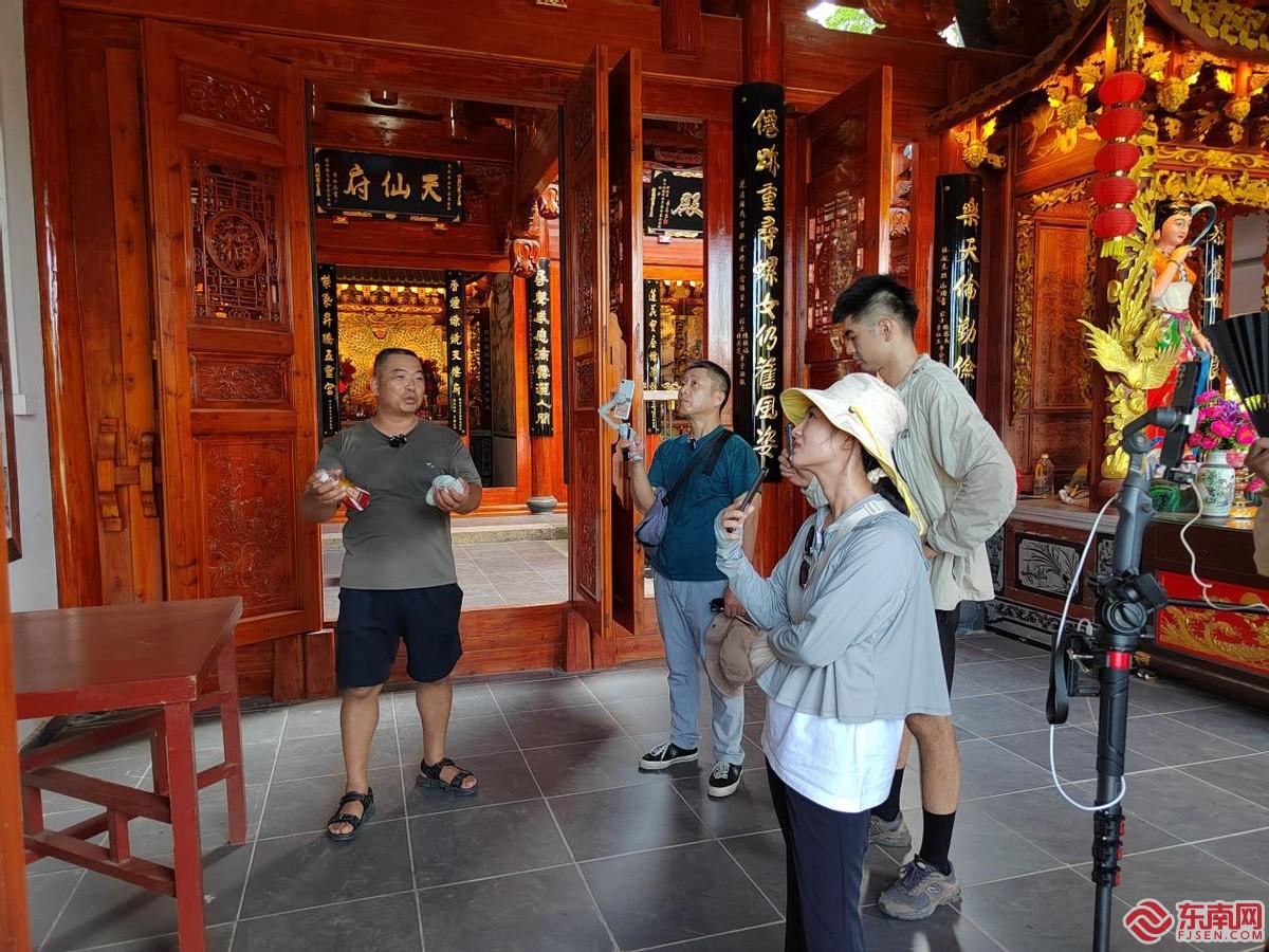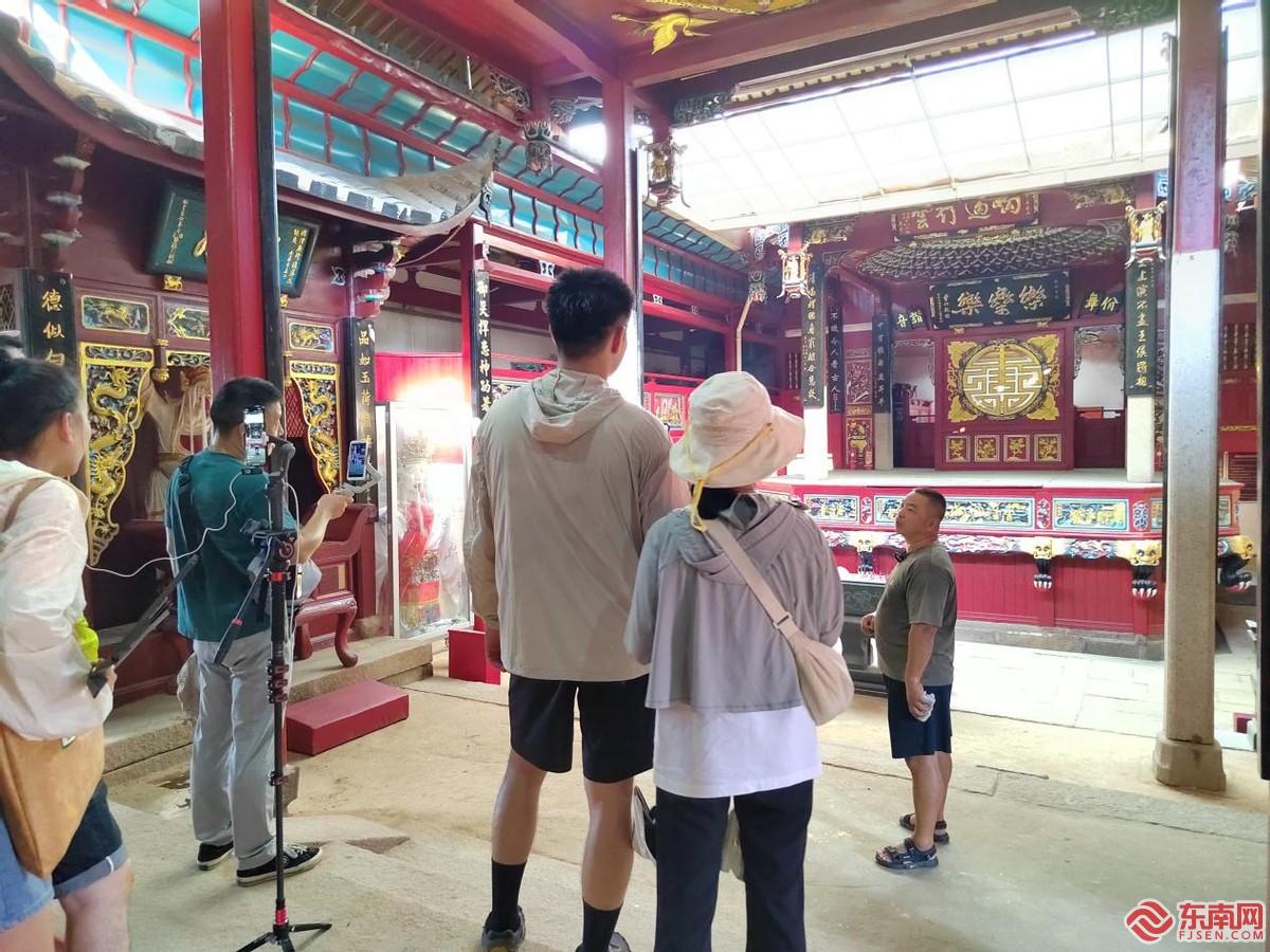 侯官村內,有千年歷史的城隍廟,靜靜佇立在村頭。主播們踏著石階走進古廟,觸摸神秘古老的石柱,欣賞城隍廟里高懸于頭頂的“忠貞不屈”“執法必嚴等木牌匾,深入了解古跡中的孝廉文化。