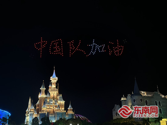 無人機表演編排出“中國隊加油”隊形。景區供圖