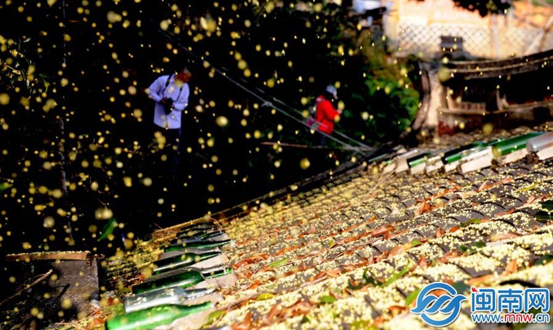 芳亭村打桂花的盛景,吸引攝影愛好者入村。 中國茶都安溪,隱藏著一個花香四溢的村落——“華東桂花第一村”虎邱鎮芳亭村。這里桂花種植歷史悠久,大大小小的桂花樹上萬棵,其中百年以上的桂花樹168棵,高齡桂花樹達4000棵。桂花品種主要有丹桂、金桂和云桂。 每到金秋時節,萬株桂花競相開放,芳亭村就舉辦“桂花節”打桂花活動。枝枝丫丫上掛滿的金色小花,似滿天星又如黃金傘,如雨灑落。濃郁的桂花香,打桂花、篩桂花、制花茶的熱鬧場景,松軟的桂花糕、醇厚的桂花茶、香甜的桂花蜜,帶來一場視覺、嗅覺、味覺的多重盛宴。 同時,百年桂花谷與周邊的千畝稻田遙相呼應,形成“滿山盡帶黃金雨”的壯觀景象,充分展示著秋收時節的大美畫卷。 漳州華安縣石井村 賞秋看點:千畝梯田 最佳觀賞時間:10月-11月