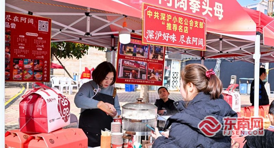 深滬鎮以其深厚的歷史文化底蘊和豐富的民俗特色而聞名,創造出了拳頭母、魚丸等近百種獨具特色的美食,其中有21種國家級的名小吃、10個國家美食地理商標。隨著時代的變遷與旅游業的蓬勃發展,傳承與創新成為推動地方特色文化持續繁榮的關鍵。山海相擁的深滬鎮,將家鄉好物融成十項地理標志證明商標,嚴選配比食材,幻化出“滬江十八道”,以地標風味,待八方賓客。