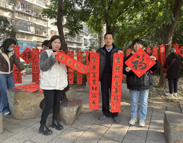 活動現場,紅紙翻飛,墨香四溢。省文旅廳退休老干部和社區人才代表揮毫潑墨,為群眾書寫著一副副寓意吉祥的春聯,希望在新的一年為群眾帶來好運和祝福。志愿者們還熱情地向群眾發放文明宣傳資料,引導群眾自覺接受護河愛水、移風易俗等文明行為,共筑文明新風尚。