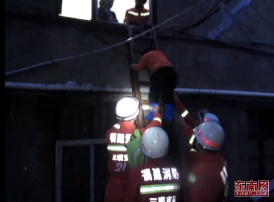 出租房人員被困消防員架梯開辟救生通道 鄒丹 攝