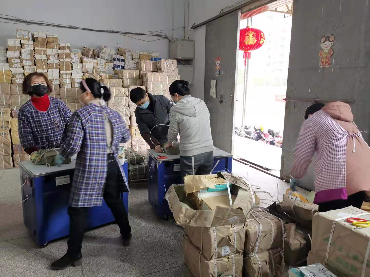 福建新華發行集團教材倉庫正在加班加點打包發貨 二、直面疫情,踐行使命,服務“停課不停學” 隨著新冠肺炎疫情形勢的日益嚴峻,中小學生的“停課不停學”卻近在眼前,中小學教材能否實現“課前到書”,牽動著各級政府部門、教育主管部門、師生和家長的心。集團上下直面疫情、不畏艱險、迅速行動、上下一心,發揚新華人特別能吃苦、特別能戰斗的精神,確保各年段、各科目的網課教學電子材料和紙質材料的滿足供應。根據福建省教育廳《關于推遲全省大中小學幼兒園2020年春季學期開學時間的通知》和教育部《關于認真做好疫情防控期間教學用書供應工作的通知》文件精神,福建新華發行集團及時向全省下發了《關于做好2020年春季教學用書發行工作,確保教科書“課前到書”的通知》,要求各分公司密切與學校聯系溝通,及時對接學校相關負責人,確定送書時間,在做好防疫工作的同時,確保第一時間把教科書配送到校;并采取“停工不停班”制度,利用微信群、QQ工作群等通訊工具,即時傳達文件精神、發布消息、匯報情況,據全省各分公司統計上報,目前各地新華書店已將70%教材送達學校,剩余教材確保開學前送達學校。同時,為確保全省大中小學生的網絡教學質量,福建新華發行集團職能部門第一時間與各教材出版單位和教輔材料供貨單位聯系溝通,整理匯總電子版教科書的鏈接網址,并發揮各基層新華書店日常密切聯系教育部門、學校、家長的優勢,及時向社會公布,免費下載使用,保證第一時間讓師生和家長有資料在手,使學生做到“停課不停學”。