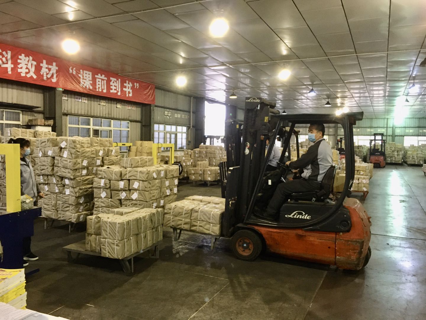 2020年年初歲首,一場突如其來的新型冠狀病毒感染的肺炎疫情爆發,并迅速肆虐中華大地,此時正值2020年春季教材發行高峰時期,可怕的病毒傳播、大面積的物流停運,阻斷了春季教材“課前到書”的正常渠道,但卻阻不斷福建新華人踐行初心、共同戰“疫”、共克時艱、眾志成城,堅決打好“課前到書”攻堅戰的堅定步伐。福建新華發行集團作為承擔中小學教材發行工作的主力軍,深刻認識到疫情防控工作的緊迫性和教材發行工作的重要性,義不容辭、刻不容緩、積極響應、群策群力,做到防疫、發行“兩不誤”,全力確?!罢n前到書、人手一冊”政治任務的使命必達。為確?!罢n前到書”這面光榮的旗幟在艱險的戰“疫”中逆風飄揚,福建新華人這樣做: 一、厲兵秣馬,未雨綢繆,搶奪2020年春季教材發行工作先機 福建新華人視“課前到書”政治責任重于泰山。在這次新冠肺炎疫情全面爆發之前,即春節放假之前,所有福建新華教材一線工作人員厲兵秣馬、未雨綢繆,與各出版社、供貨單位、印刷廠以及物流企業多方協調、積極催貨,加緊加快節前教材教輔的印制與供貨,緩解后期的供貨壓力。截止到1月23日,福建新華發行集團已向全省各級新華書店配發教材1694個品種,4816.86萬冊,發貨率高達100%;分發進校教輔771個品種,2787萬冊,發貨率高達99%,搶奪了2020年春季教材發行工作的先機。