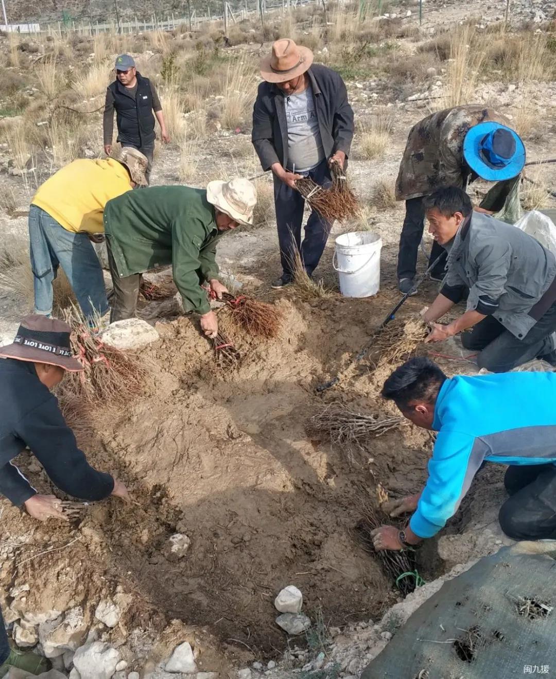 ▲在新拓展的葡萄種植基地指導農牧民沾泥漿泡苗。 福建第九批援藏隊供圖