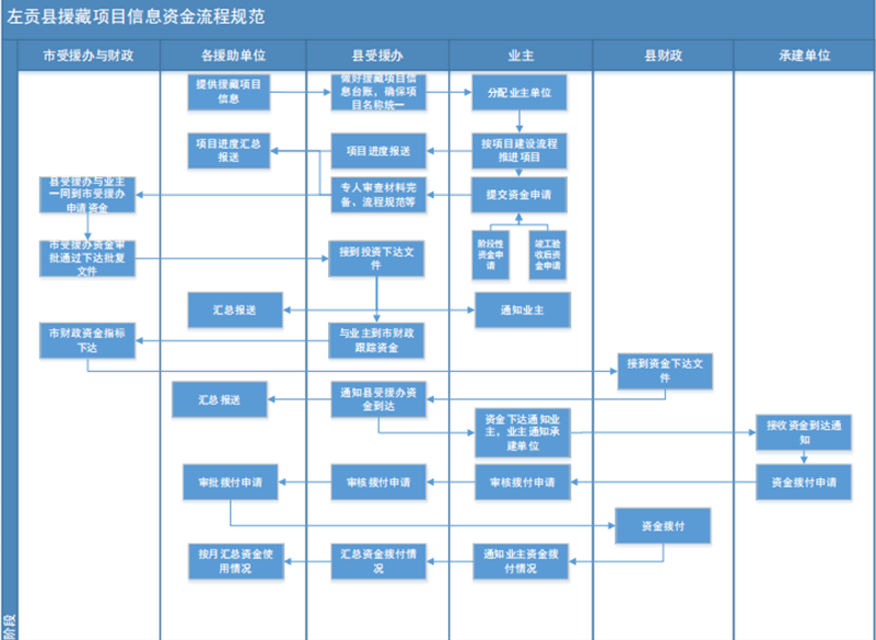 近日,左貢縣委辦印發《左貢縣援藏項目信息資金流程規范》,這是左貢縣為進一步規范援藏項目資金使用,提高項目效率的一個舉措。此前,援藏項目信息和資金流程存在多頭參與、信息溝通滯后以致援助單位信息無互通、項目推進情況不同步、資金到位及撥付情況不明確等問題,為此,福建省第九批援藏工作隊左貢工作組牽頭負責起草,全面優化流程,規范援藏項目相關信息、資金等業務流程管理及各環節辦理時限。